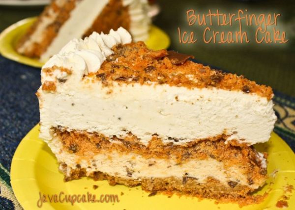 Among them is this Butterfinger ice cream cake made by Betsy of JavaCupcake. She made it upon request as her husband’s birthday cake. It’s made of vanilla ice cream, graham crackers, butter, whipping cream, sugar, and, of course, Butterfinger bars.