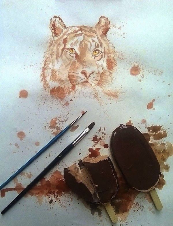 Watercolor Style Paintings Created Using Ice Cream