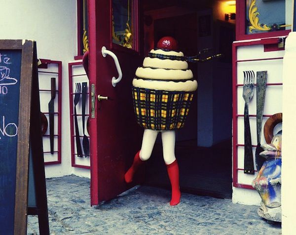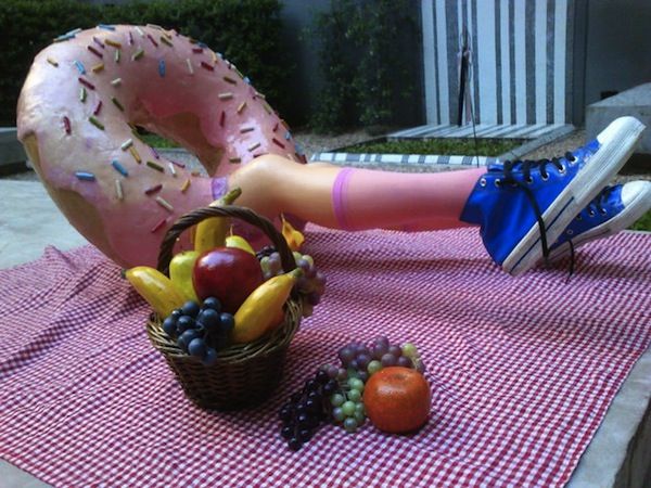 Camila creates human scale fiberglass sculptures of desserts with legs, anthropomorphic sweets which somehow succeed in having a personality despite their lack of facial features or any kind of face at all. Her delicious works are a big hit in her native Argentina, and those who attend gallery showings of her works are encouraged to interact with the sculptures by changing their clothes, although biting is strictly forbidden.