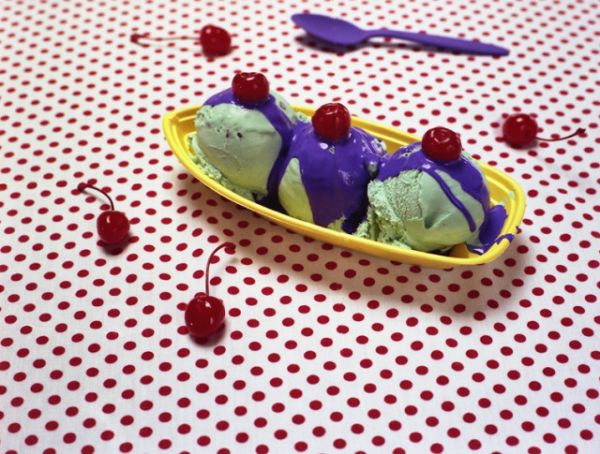 The Kool-Ade looks pretty good, because we are used to Kool-Ade in weird colors. The pasta looks unappetizing because you can tell it has paint on it instead of sauce. But the rest are just strange. You might get me to eat the sundae, but I’d be expecting that syrup to taste like artificial grape flavor, and that just ruins the experience, no matter what the actual flavor. See the entire series at Brown's website. -via Laughing Squid