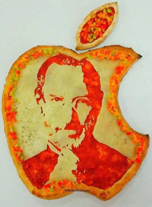 Wilhelm Rodriguez is an artist who can fill your belly with awesome art. He's a chef at Papa's Pizza in Cabo Rojo, Puerto Rico. He can create highly realistic portraits of people both real and imaginary. I love this one of Steve Jobs inside the Apple logo! You can view more of Rodriguez's work here.