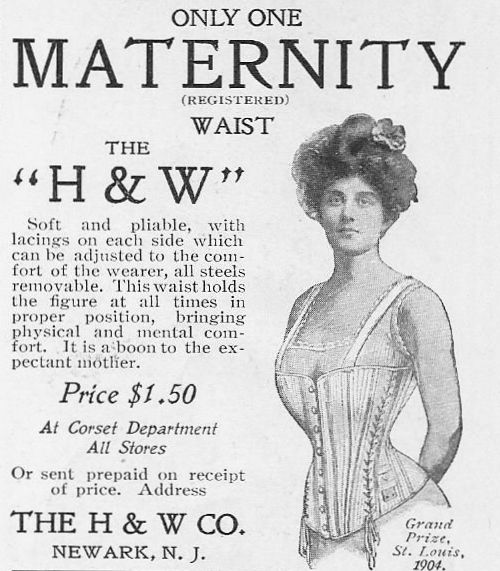 Heaven forbid that a woman would neglect her figure just because she’s pregnant! This maternity corset ad was featured in Ladies Home Journal in 1905. “This waist holds the figure at all times in proper position, bringing physical and mental comfort. It is a boon to the expectant mother.” The main feature appears to be that the steel stays are removable. Another reason to be thankful you live in 2014. From Weird Vintage.