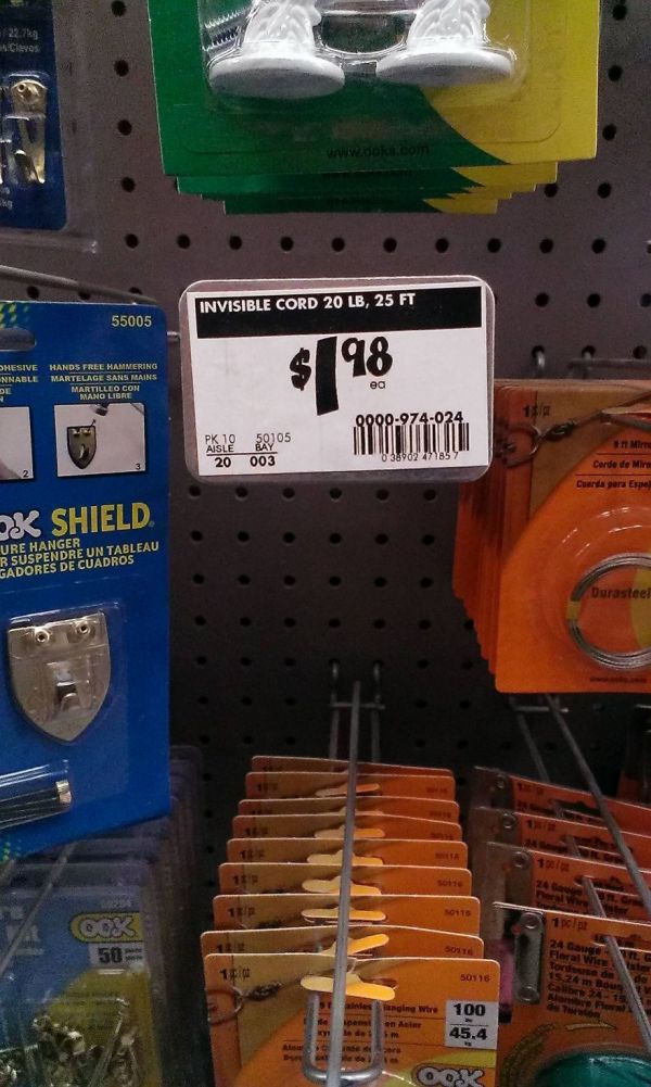 Yessir, you need some of Home Depot's invisible cord. We call it that because only intelligent, wise, and good-looking people can see it. To everyone else, it's invisible. How many would you like to have today? I can bring them directly to the register for you.