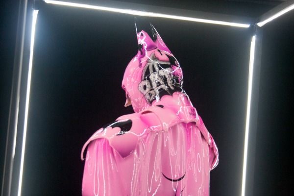 Bright pink ice cream cone version by street artist/painter Buff Monster: