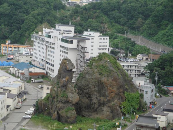 Utoro is a small port town in Hokkaido, the northern island of Japan. Looking over the harbor are the fearsome Godzilla Rocks, so named for their resemblance to that monster. My question: is Godzilla guarding the town--or waiting for the right moment to crush it?