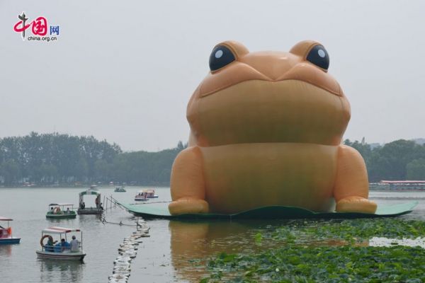 Chen Boyuan of China.org reports that there is now a 22-meter (72 feet) tall inflatable toad in the lake in Yuyuantan Park in Beijing. Boyuan explains that the "Toad of Rejuvenation" is a Chinese cultural symbol that "brings blessings and fortune."