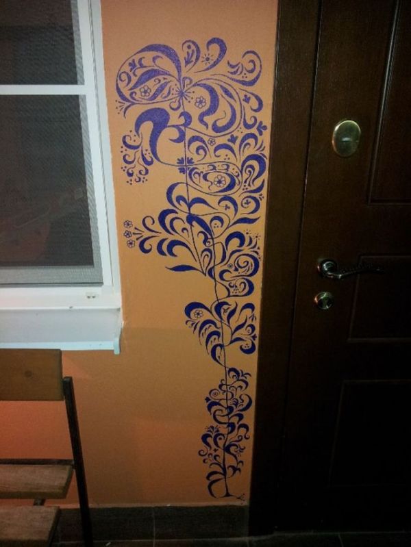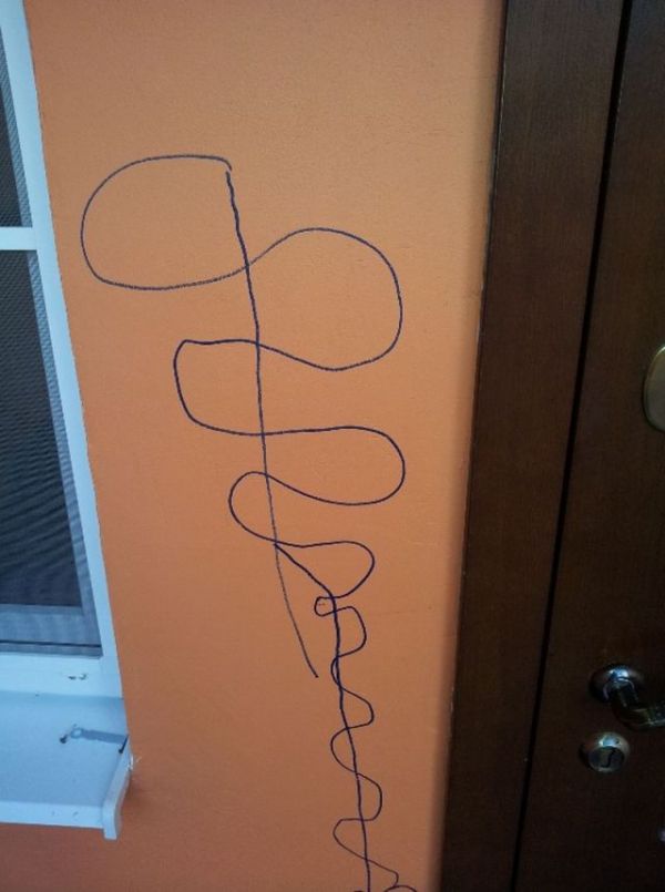 These two photos of unknown provenance show a clever solution to a common problem: your toddler/preschooler/20-something scribbled on the wall.