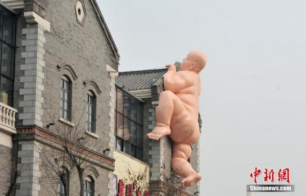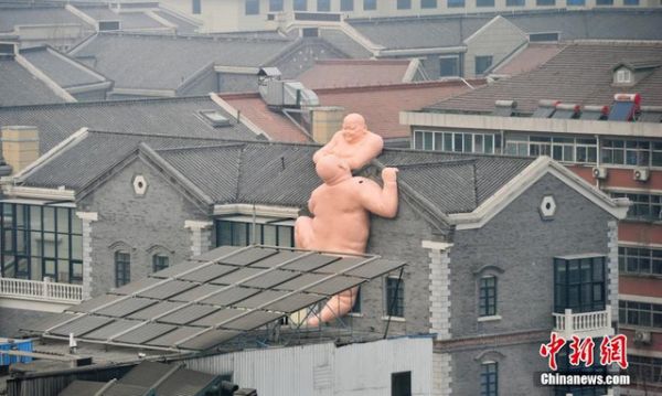 Why is the Buddha naked? Why are there two of them? Why are they climbing a building? We have no idea. Eric Jou, Kotaku's correspondent in Beijing, reports that these two sculptures are a mysterious art installation in Jinan, Shandong province.