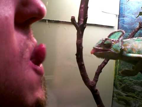 Do you want to flirt effectively with a chameleon? Stick your tongue out and wave it around. Watch this chameleon respond to the seductive human's wiles.