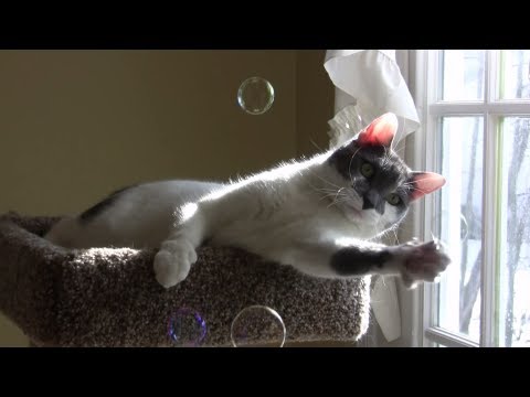 You have to wonder what goes through a cat's mind when they see soap bubbles, They fly through the air just asking to be caught, but when you catch one, it disappears! -Thanks, Tommy and Gracie!
