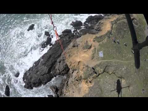 Oreo is a black and white labrador. She's friendly, but also kind of dense. She explored a rocky cliff on Portuguese Beach in Sonoma Coast State Park, California. Oreo made it about 40 feet down a 90 foot cliff and got stuck. She couldn't climb back up. And she couldn't climb down, either, because the waves were battering the cliff hard. If Oreo had tried to get down, she would have probably drowned.