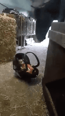 Tracy Lega's horse Donato stared at the tiny human in the stable. Then he decided to play babysitter. He gently rocked the boy's car seat back and forth, entertaining both himself and the baby.