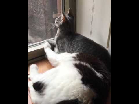 When a cat wants to plop down, he doesn't really care what's underneath him, even if it's another cat. This cat got distracted by something outside the window and just dug in his place to watch. The cat that was already laying there had a mighty struggle to free himself! Sure, we allowed cats in our homes for pest control purposes, but we keep them for their entertainment value. -via Tastefully Offensive