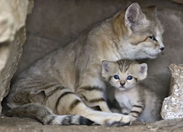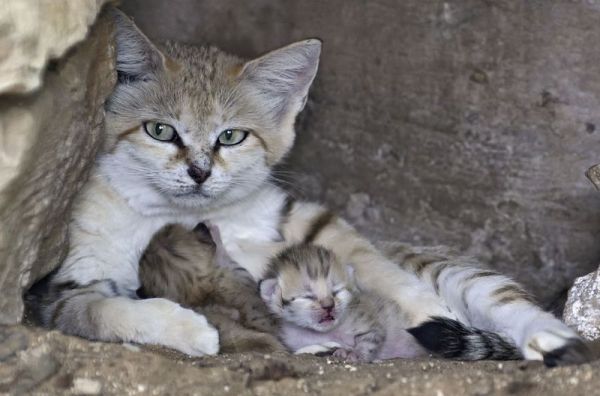 Any sand cat births worldwide are cause for conservationists to celebrate, as the species is classified as “Near Threatened” on the IUCN Red List. Only 200 sand cats exist in European zoos, and constant attempts are made to increase their numbers.