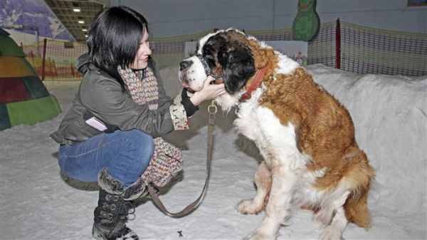 Sophia was a 6-year old St. Bernard with terminal cancer. She loved to play in the snow. But her final day came in the middle of summer. Her human, Alyson Page, nonetheless found a way to give her a last experience with snow hours before she was put to sleep.