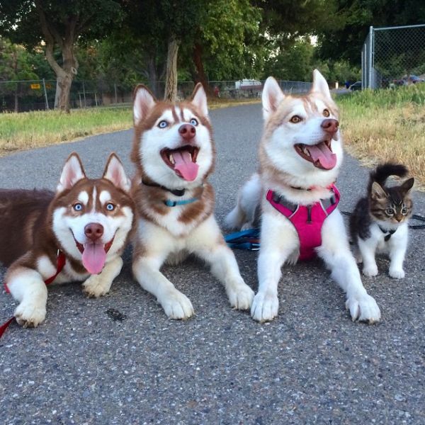 Rosie has taken on some canine habits, and considers herself a member of the husky pack. Read the story of Lilo and Rosie at HuffPo, and see plenty of pictures and video of their adorable lives at lilothehusky on Instagram.