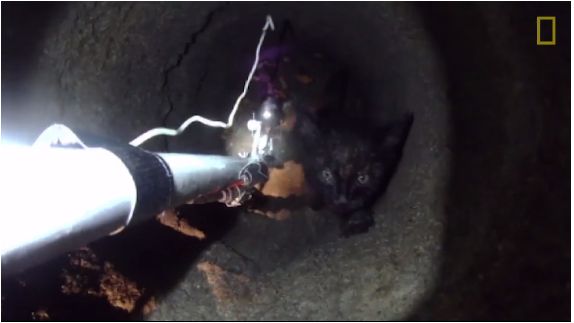 They sent down another pole with a camera and a loop attached to grab the kitten. Watch a video of the rescue at National Geographic News.