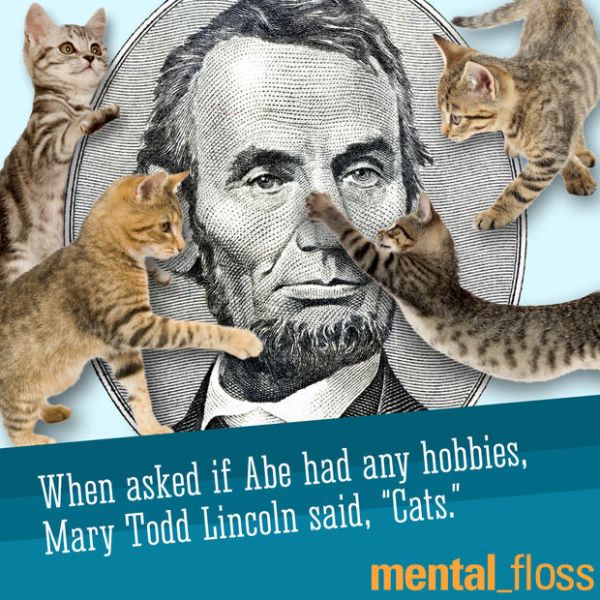 9. Still, the title of history’s craziest cat man might go to President Abraham Lincoln. Mary Todd Lincoln was once asked if her husband had any hobbies. Her response? “Cats!”