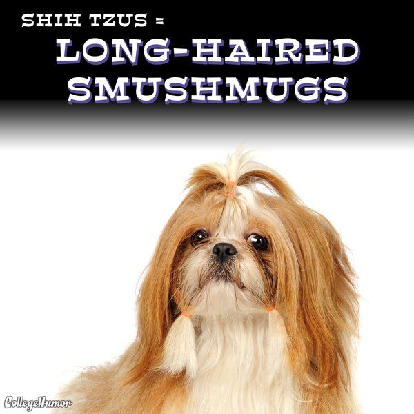Not everyone knows what a Shih Tzu looks like off the top of their head, but if you call them Long-Haired Smushmugs (a much more accurate description) people will know exactly which breed you're talking about.