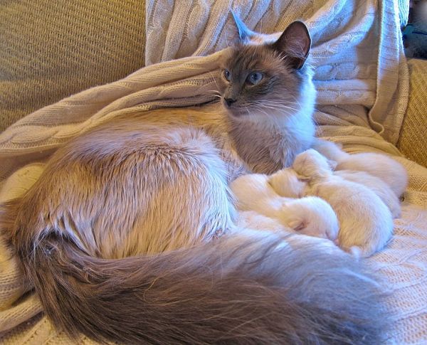 * Siamese cats are mostly white when they’re born. The markings come later.