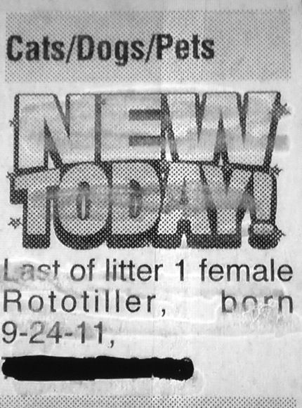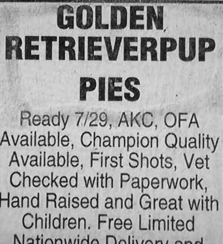 If you want a new dog, you can always look the classified ads of your local newspaper. However, you should be ready to puzzle out what the seller actually meant to say. Layout editing, autocorrect, and clueless spelling can turn a simple ad into a comedy of errors. These were all recently featured at Bad Newspaper.