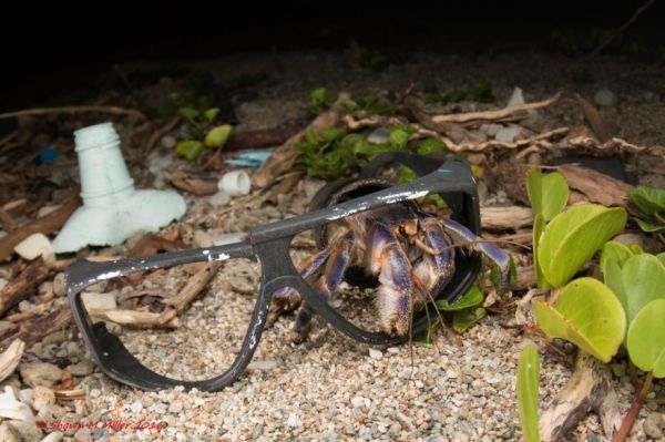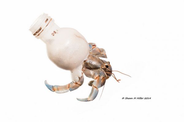 Okinawa-based photographer and nature lover Shawn M. Miller started shooting this series after he and his friends noticed a bunch of Blueberry hermit crabs walking around with trash "shells".