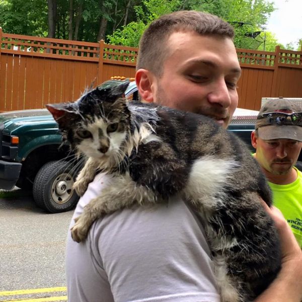 Passersby noticed a cat stuck in a grate over a storm drain in Winchendon, Massachusetts, last Thursday. The Winchendon Fire Department responded and found the cat with its body hanging inside the grate, and its head stuck. They believe the cat was inside the storm and drain and was trying to get out. However, it’s also possible that cat’s body slipped through from above. The fire department reported: