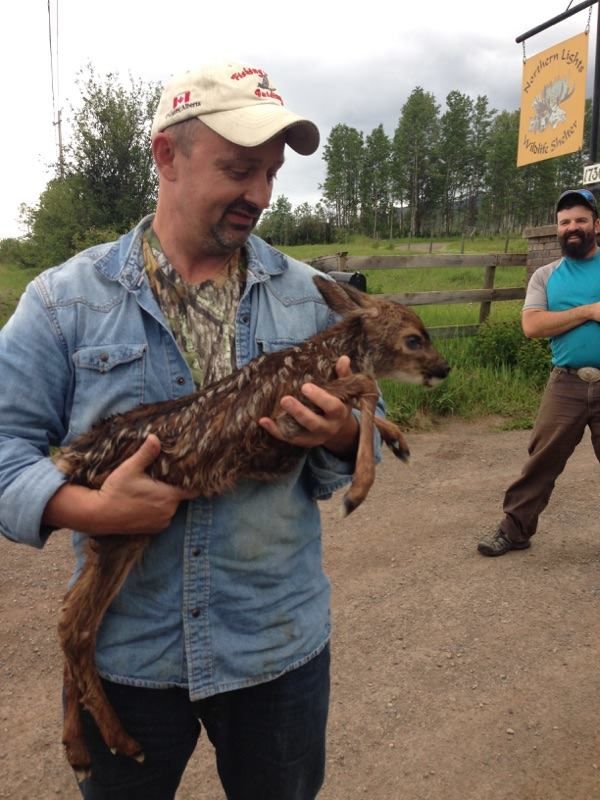 Steele pulled out his knife and performed a cesarian section on the deceased deer. It took less than three minutes, and the fawn started breathing on its own. The couple looked up a local wildlife shelter, the Northern Lights Wildlife Society. They wrapped the fawn in blankets and put her in the back seat.