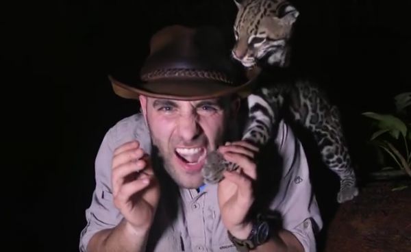 Coyote Peterson was wandering through the Costa Rican rainforest at night -which doesn’t seem all that safe- when he encountered an ocelot. Luckily, this was a half-grown cat that was somewhat used to people. Still, how strange is it that a wildcat will let you pet her?