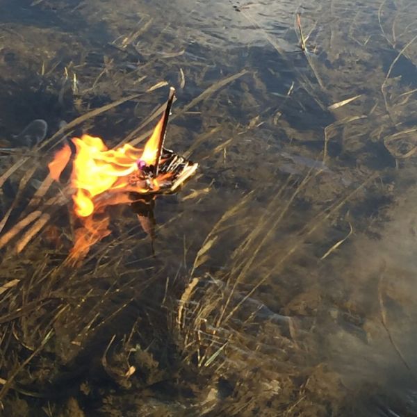 He built the fish a tiny ship loaded with matches in order to provide him with a proper viking funeral and the result was perfect for helping him to rise up to Valhalla. Oddly, this is not the first viking funeral for fishes we've seen.