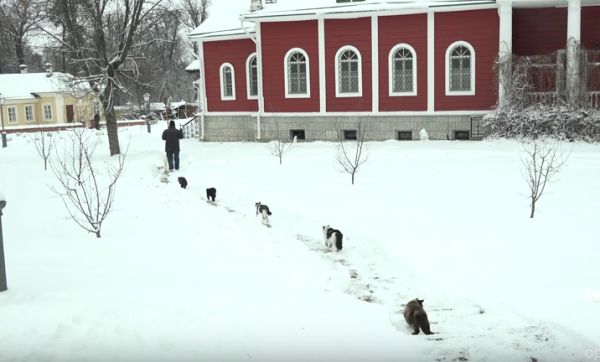 Kuzmich doesn’t call the cats, but he manages to give them a blessing along the way. The walk just became a habit for them. The monastery found it charming, and made a video to show “something simple and kind.” -via Buzzfeed