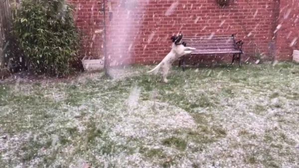 But watching this video of a 4-month-old English Springer Spaniel from Wales leaping around catching snowflakes in mid-air will give you some idea of how amazing snowfall seems to a tiny puppy's brain!
