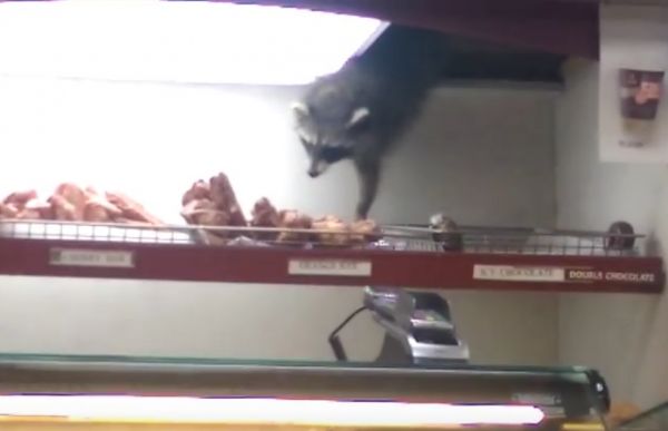 Watch out, Pizza Rat, there’s a raccoon ready to steal your thunder! A masked bandit entered a doughnut shop through the ceiling and brazenly lifted the goods right in front of customers -with cameras.