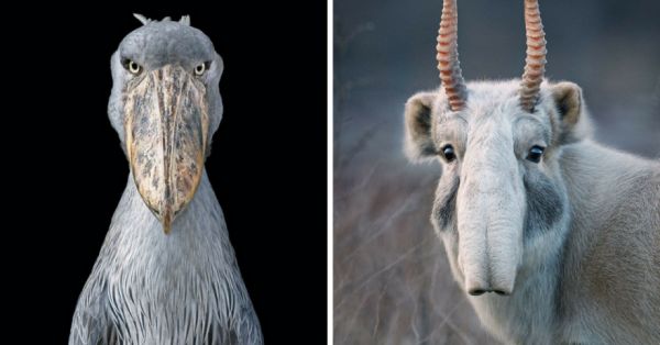 Because of this detachment from nature many humans have a hard time caring about the fact that certain animal species are endangered or going extinct, like the Shoebill (only 5-8,000 in the wild) and the Saiga (critically endangered) above.