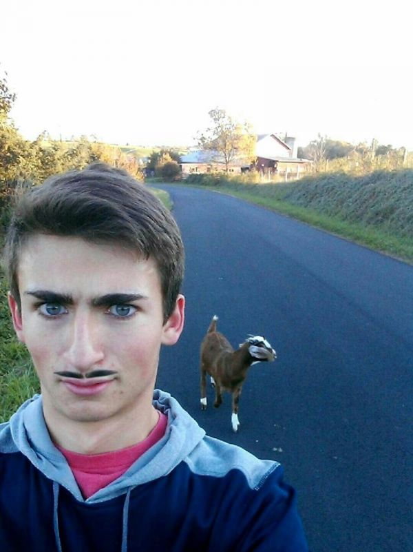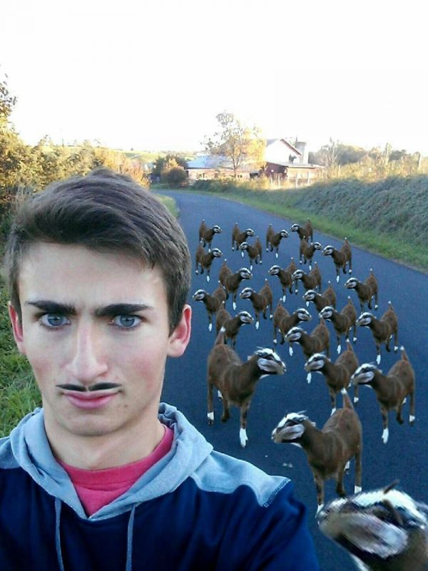 Redditors naturally went a bit Photoshop crazy with the lad's selfie, and after moving the brows around a bit and messing with the local goat population numbers the selfie 'shopping reached this inevitable conclusion: