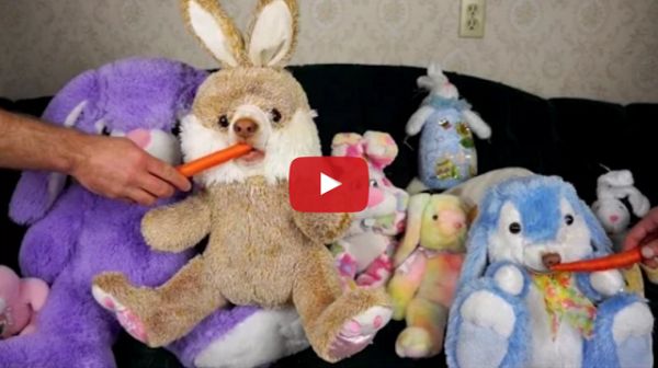 Dogs will go to great lengths for a tasty treat to chew on, especially if it's human food instead of their boring old kibble, but dressing up to look like stuffed animals is a truly innovative technique.
