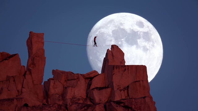 This stunning video by filmmaker Bryan Smith shows the full moon's majestic rise behind free climber Dean Potter as he walks a highline at Cathedral Peak in Yosemite National Park.