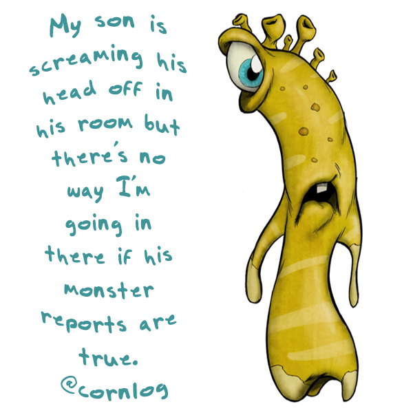 My son is screaming in his room but there’s no way I’m going in there if his monster reports are true bit.ly/LSG0f8 @cornlog