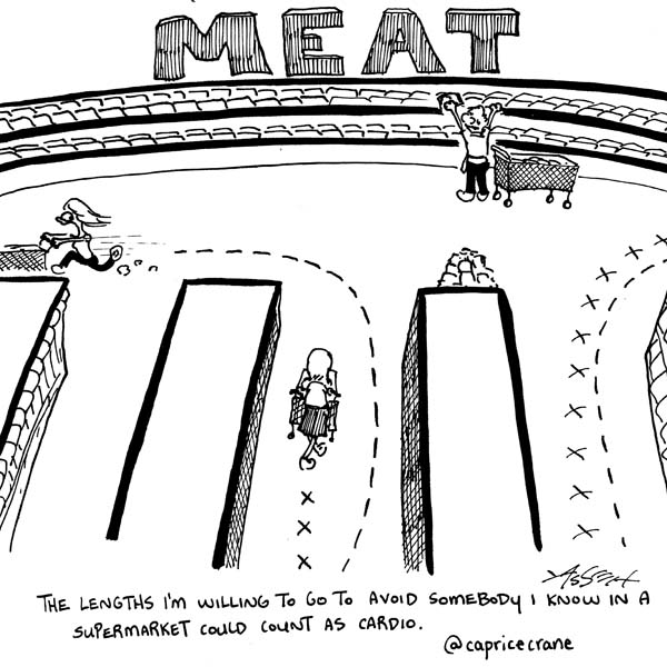 The lengths I'm willing to go to avoid somebody I know in a supermarket could count as cardio. -Â @capricecrane