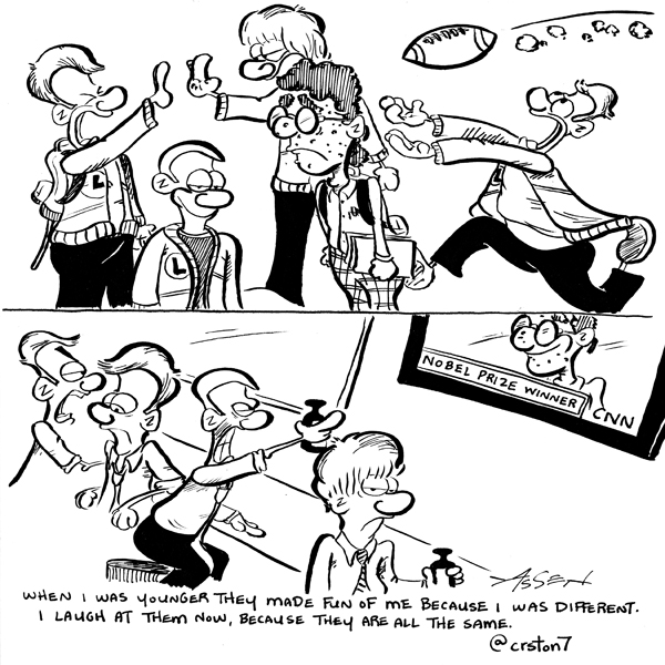 When I was younger they made fun of me because I was different. I laugh at them now, because they are all the same. @crston7
