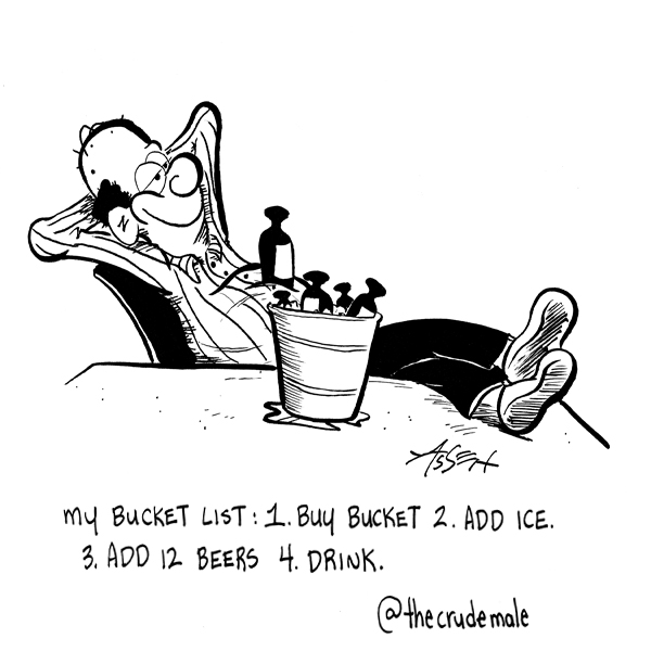 My bucket list: 1. Buy bucket 2. Add ice 3. Add 12 beers 4. Drink. @thecrudemale