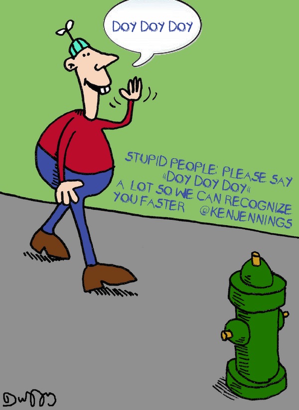 Stupid people: please say "DOY DOY DOY" a lot so we can recognize you faster. - @KenJennings