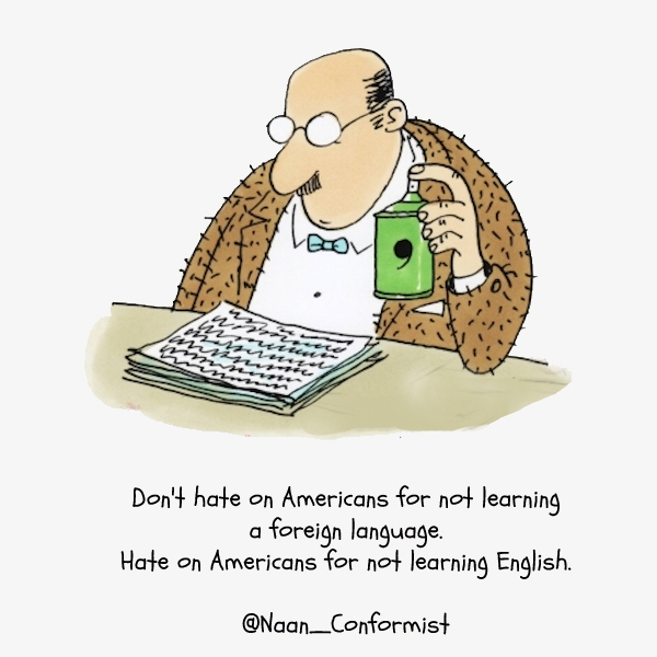 Don't hate on Americans for not learning a foreign language. Hate on Americans for not learning English. @Naan_Conformist