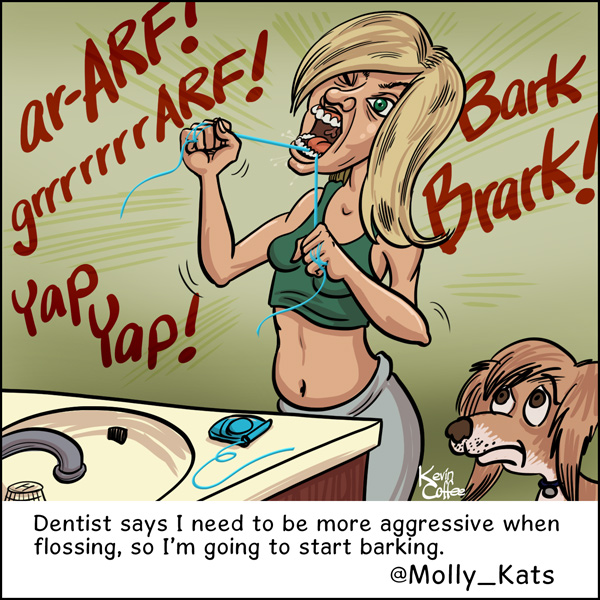 Dentist says I need to be more aggressive when flossing, so I’m going to start barking. @Molly_Kats