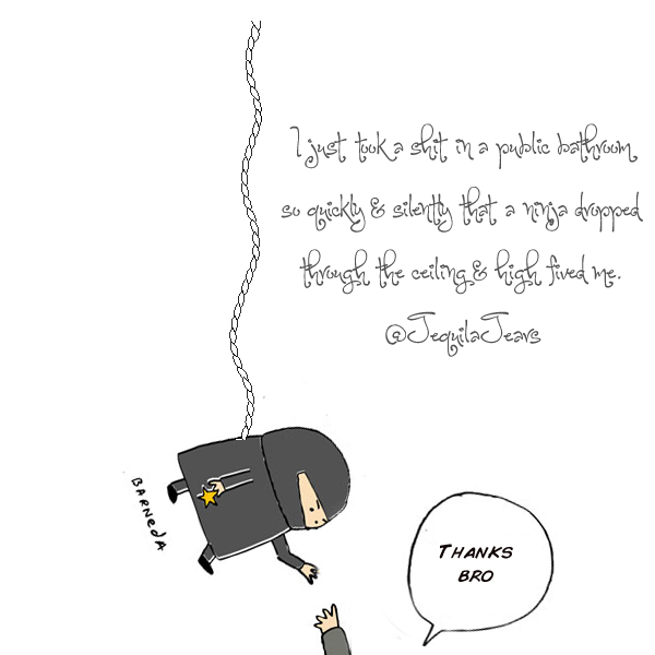 I just took a shit in a public bathroom so quickly & silently that a ninja dropped through the ceiling & high fived me. @TequilaTears