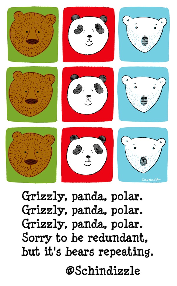 Grizzly, panda, polar. Grizzly, panda, polar. Grizzly, panda, polar. Sorry to be redundant, but it's bears repeating. @Schindizzle