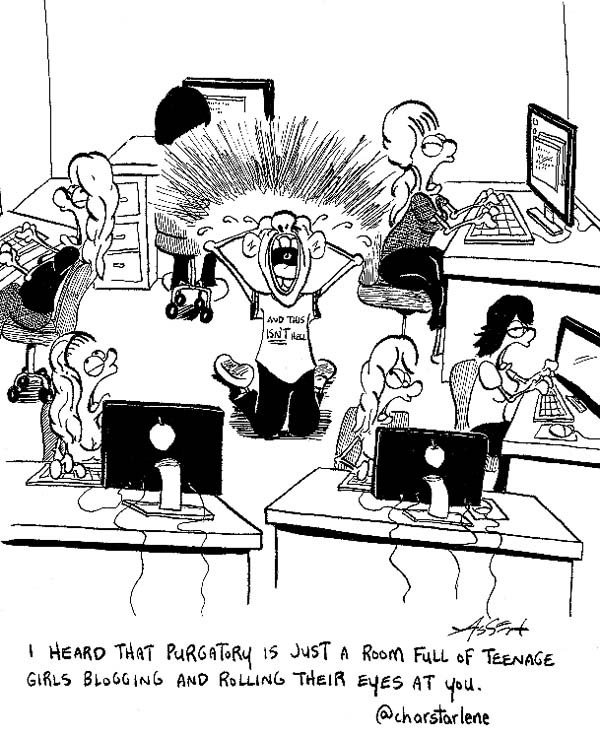 I heard that purgatory is just a room full of teenage girls blogging and rolling their eyes at you. @charstarlene