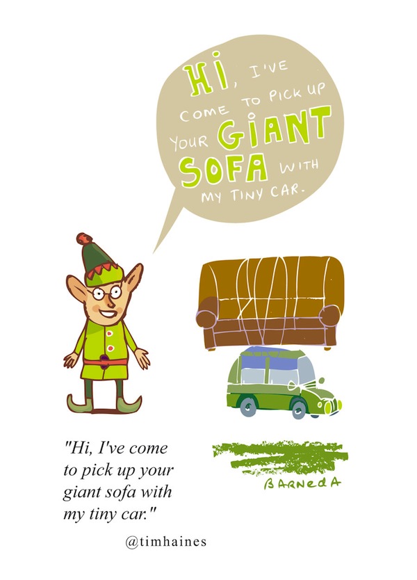 Hi, I've come to pick up your giant sofa with my tiny car. Â @timhaines