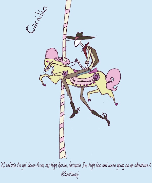 I refuse to get down from my high horse, because I'm high too and we're going on an adventure. - @Spotswoj