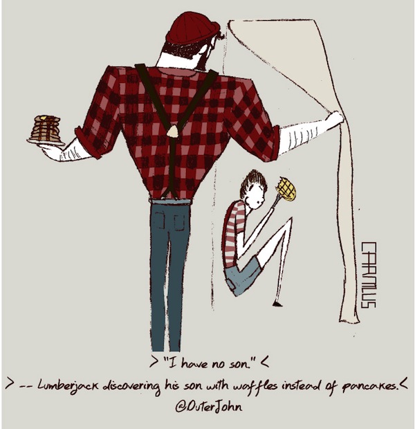"I have no son." -- Lumberjack discovering his son with waffles instead of pancakes - @OuterJohn